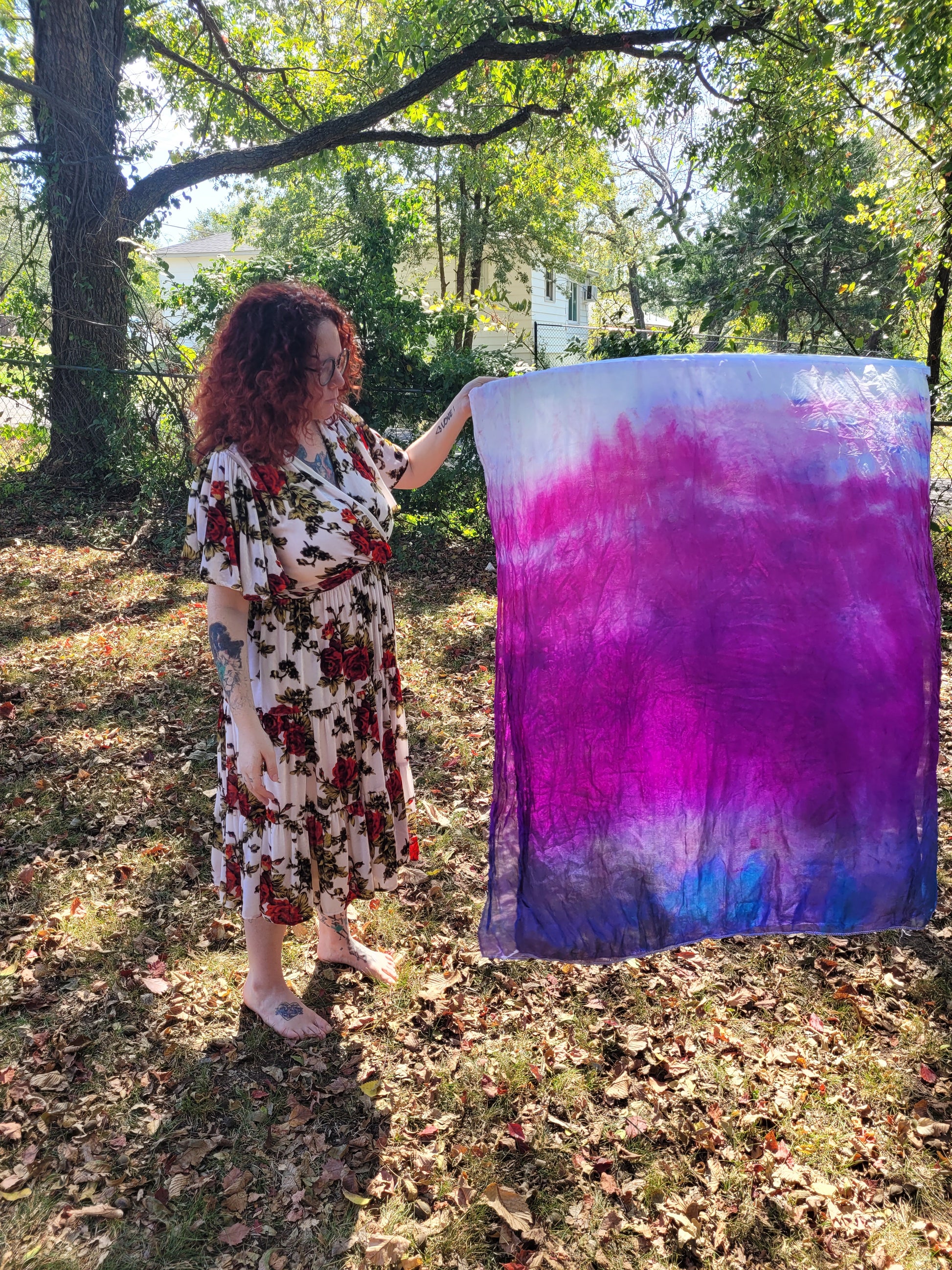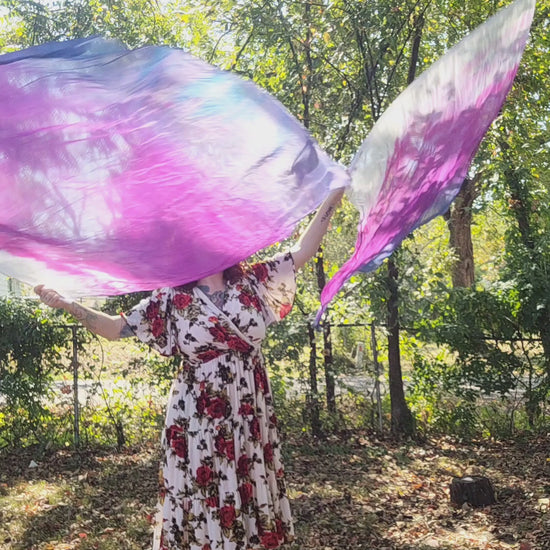 These worship flags are hand-dyed habotai silk. They're approximately 45x55" and include sewn-in flexirods.